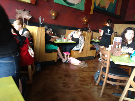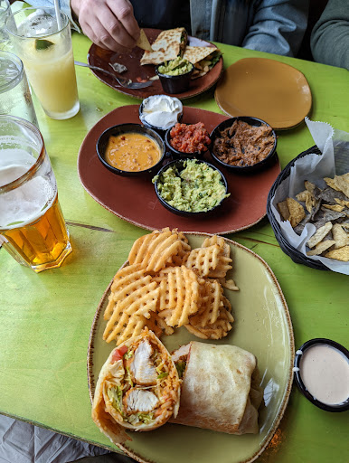 Place is usually crowded. The food is okay, but the few times I have gotten a burrito from here, it seems like they just slap the ingredients into their own sections of the burrito, so each bite you only get one taste (i.e. one bite may be all beans and another may be all rice depending on what corner you start eating from). The service is usually pretty good, can be slow during busy times, but they do their best to keep up. The drinks are awesome, and the happy hour specials are advantageous.
