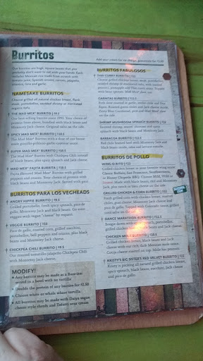 I do wish there wasnt QUITE so much rice in the burritos - theres no reason for the rice and tortilla to comprise such a vast majority of the dish. But I usually love everything I order here, including the yummy frozen margaritas. The soups are flavorful and delicious, as is anything with guac or the cilantro lime dressing. Good beer selection as well. I like the atmosphere here a lot better than the Oakland location. Music is usually something like Cars or Pixies. Its the kind of place I can go with a friend or take a book and have lunch by myself. I always find myself craving Mad Mex whenever its been a while.