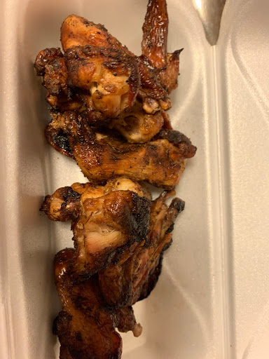 Great prices and good food. Take out, unless you are on the road and can deal with one table to sit. Wings were on the smallish side but I got 8 in my order of 6 (yeap they will do that!!). Pork ribs were great, juicy, meaty, with the right amount of char (and again, I got 8 in a half-slab that was supposed to be 6)... Sauce is too ketchup-y for my taste, yet not too sweet and the heat is there. The problem: everything is a tad overcooked and than left to wait in covered dishes for a bit too long. So it does not taste quite like fresh barbecue. Still, the amount of good food that you will get here for your money is 5 stars. Next time I will just come and wait till they bring the fresh batch of things I like... 3.5 for the food, 5+ for the value.