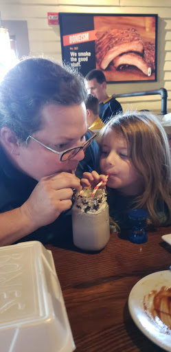 The food is out of this world. Best service is a very long time. It was my granddaughters 4th birthday and she love the waiter Dustin Mead. We had a party of 8 it was Thursday, July 24 at 8pm and when we got there Dustin was not working but he was there. He came over to talk to Milanna and she talked to him about her birthday, vacation, etc... She does not talk to anyone like that but there is something special about Dustin, she adores him. We then got our tables, 1/2 hour later Dustin came back and gave Milanna a birthday gift, needles to say we were so shocked. He took the time to go to the mall and get her a pink unicorn, one thing she asked for and did not received for her birthday. We can not say enough about Dustin Mead, he made her birthday complete. Thank you Dustin and Thank you Smokey Bones for having an extra special touch with Dustin. Great Job! Judy Costello and Milanna :)