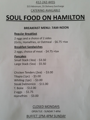 The best soul food in Pittsburgh hands down. The food is so good and the quality is superior to any other soul food restaurant in Pittsburgh. I have had a couple business meetings here because the food and experience should be shared with everyone.