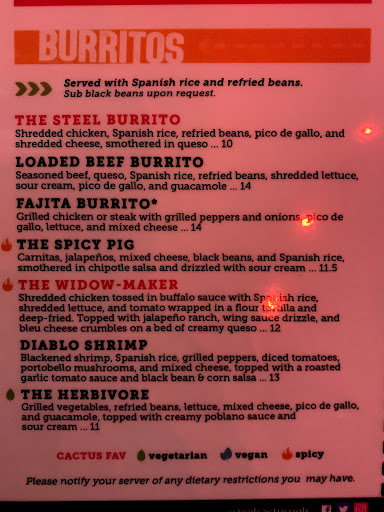 I I Please follow my live updates of Steel Cactus! [8:09pm] Seat called, Corona in hand. Lets start this ride. [8:24pm] Dude. They charge for salsa. SALSA! Even taco bell doesnt charge for salsa. Taking advantage of gringos. [8:32pm] Now, they refused to add jalapeños to my fajitas, because the "noxious gases would knock the whole restaurant out." [8:42pm] Salsa is okay. Not worth $3. However, Ill increase to 2 stars for shiggles. [8:44pm] My beer was just almost stolen like the Alamo. Back to one star. [8:52pm] Side note, theres some hot chicks to our left. What up doe? Get of your phone girls, talk to each other. [9:06pm] My fajitas arrived smelling like la comida de mi abuelo...but it took 57 minutes to get our food. ¡Tres estrellas! [9:10pm] The hot girls left... [9:11pm] and were back to 2 stars...amature hour. [9:25pm] Ehh. Im digesting and Omi "Cheerleader" is hurting my brain. Done with this experience. Two stars overall because it wasnt dog food.