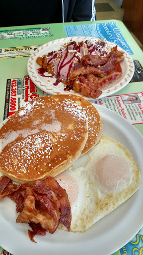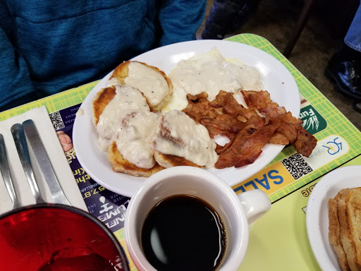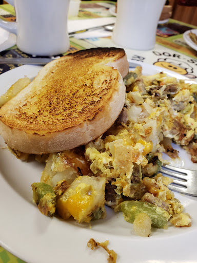 This place is highly over-rated. Their potatoes and hash-browns are quite tasteless. They arent willing to make an substitutions to the menu, even if you have a dietary restriction, you just end up eating the cost on the bacon or wheat product that you dont want/cant eat. The place is VERY popular though, so good news, you also get to stand outside in the heat and wait to be seated. Theyre riding the advertisement they got for being on tv with Guy from Food Network. Its got that small time/family owned business feel, lots of shouting from the wait staff and cooks, if youre into that kind of thing. Its fairly loud. Oh, theyre also really pro-god and have signs that reflect as much.