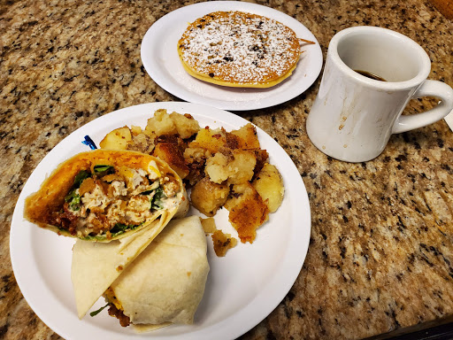 Ahh, Guy Fieri, youve led me astray. The food at The Dor-Stop Restaurant is solid but unimpressive. My vegetarian Jumbot came out with the cheese looking decidedly congealed (it was, I watched the dish sit under the warming station for 10 minutes.) Spicy? Not particularly. The pumpkin pancakes had good flavor, but were doughy and undercooked. Service can make up for a multitude of food sins. Unfortunately, here it didnt. The service, at least on my visit, was obviously from the culture of "No." Me: Hi, can you serve the Jumbot as a burrito? (Same basic ingredients as the burrito). Server: No. Me: Ok, how about a side of pierogies? Server: No. Thats only for the special. Service efficiency was also lacking. 25 minutes to get an order of pancakes? Good bye Dor-Stop. I wont be returning.