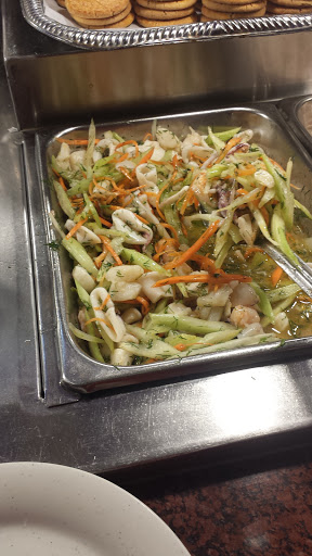 Buffets are a hit and miss, much more often a miss than a hit. And King Buffet falls squarely in that "miss" bucket. There are several things that I did not like about my experiences here and it is hard to know where to begin. Maybe I will start off by noting that the vast majority of things we tried were either overcooked or over-seasoned (or both). Also, while there is a wide assortment of things relative to a typical Chinese buffet, they fall *far* *far* below what one would expect at any decent restaurant. Yes, there were "crab cakes" on the menu but I swear to God, that if you could find any chunks of crabmeat in those "crab cakes", you have a promising career as a detective at a forensic lab! Oh yes, there was sushi but if you took even one look at the wasabi, you would know that the pale green paste they had out there was anything but wasabi. I could go on and on about other aspects of the food too. As far as it comes to service, the restaurant falls short as well. We came in at around 10 p.m. on a Saturday but even though they are supposed to be open until 11 p.m., I found quite a few stations empty. I had to point that out to at least 3 employees before one of them offered help and decided to replenish some of the empty stations. Of course, conveying things is harder if employees dont speak English which seemed to be the case with quite a few of them. Then again, even though they were supposed to be open until 11, they gave us our check at 10:45 and started clearing out the food at around 10:50. Its also worth mentioning that I did not get any refills on my water. Lastly, as my picture of the restroom attests to, the trash bin was a mess but no one seemed to care. I even saw an employee who used the restroom and left, without bothering to bring the mess to anyones attention. I guess he just didnt care. If all of this very mediocre food and indifferent service came with rock-bottom prices, somewhere in the neighborhood of say, $10 it may have been acceptable but prices here are higher at $14/ person. Both my wife and I thought that was too high for the suburbs given what they were offering. If I have one suggestion for the restaurant, it would be that they can have fewer items on their menu but try doing a better job of cooking the items and not bringing standards down to the absolute lowest common denominator. And perhaps putting a bit of effort into the ambience of the restaurant - cleaning up the bathrooms as they get dirty over the night, keeping the ice cream station cleaner, preventing unruly kids from running amok, and maybe even teaching their staff basic English. But sadly if I could discern anything about the attitude of the management, it was - we couldnt care less and we couldnt be bothered. Unless I am out of my mind, this is the last time I have stepped foot inside King Buffet.