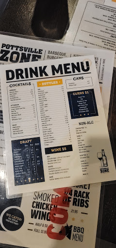 I am not a bar person but I love the Pottsville Zone because it is not a bar that serves food, it is a restaurant that has a bar. The staff is friendly with good service and good food. I find no matter what I order I am always satisfied though most of the time when I am there I cant help but order wings. I find the prices and portions to be reasonable. Sometimes when it is busy it is hard to find parking but other than that I have no problems.