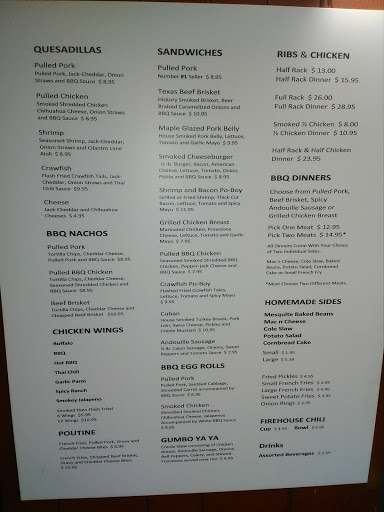 Slow smoked heaven. This cozy little log cabin is what BBQ is all about. You can see and smell your food even before it goes out the window. Good portion size and price. You can definitely see the smoke ring on the brisket and ribs. The owner even came out and was joking around with my daughters. Nice to see a local business doing well. You cant go wrong with this place.