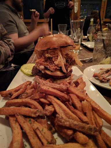 Our new favorite place. Weve been here twice in 3 days. Great craft beer selection. Never had an IPA on nitro - totally different experience. The wings are phenomenal - had the garlic parmesan and the bacon wrapped. Burgers were delicious, admittedly a little overcooked but we barely noticed because the flavors were delicious - had the black and white burger and the the one with pulled pork on top. If you like hoisin try the wrap, its great but an aquired taste. Service was friendly and attentive. Atmosphere is just or style. Every detail was thought out here from the menu items to tap selection, decor to the way they deliver your check in a cigar box. This is our new favorite place.