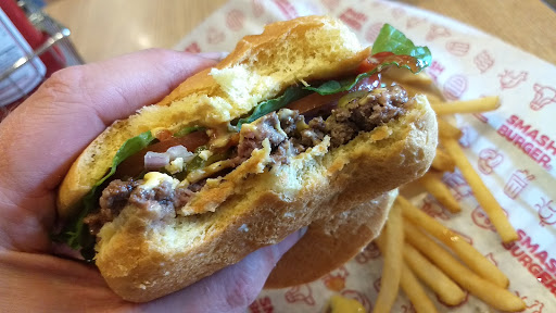 After reading all the bad reviews, I still had high hopes for smashburger. I had a awesome experience at the establishment, milkshake was good as I waited. I picked take out, So I get my food pretty quick. then I start to drive down the road making my way home, happy about this grub. At the same time destroying the fries. By the way theyre pretty good. So I finally get to what Ive been waiting for and I bite into my burger and I say to my self something is weird. So I take another bite, thats when I notice a key part of my sandwich was missing. Well how did that happen. Only GOD will ever know. I will be back next week, hopefully I can get the full experience from SmashBurger!!