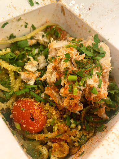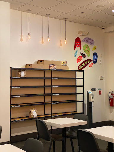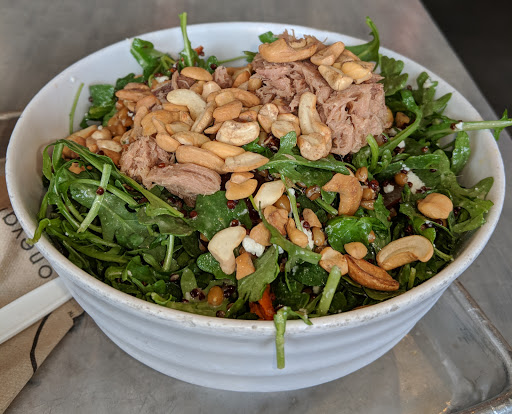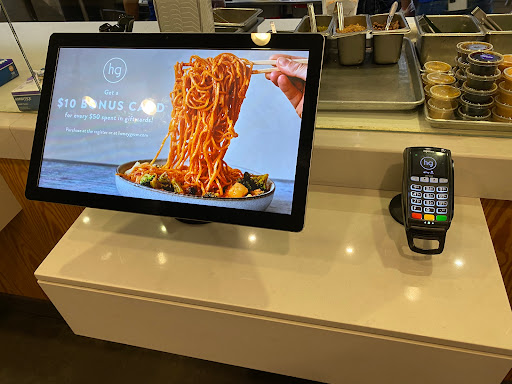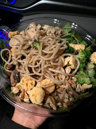 Nice selection of salads and stir-fries. The ingredients are fresh and it is possible to make carefully calibrated decisions on how healthy or indulgent you want the meal to be. Multiple touch screen terminals make ordering simple and quick. Your order being ready is announced using a "flapper" board like the status board at 30th Street Station. Service can be a bit slow as the multiple order taking terminals allow high volume waves which can overwhelm the staff.