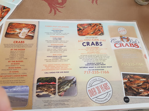 Okay, my girlfriend and I eat out A LOT (about 4 to 6 times a week) and generally when we want seafood we go to Phillips Buffet in Bmore. Not anymore!! We decided to check out Captain Bobs in Railroad and by our standards it was the best dining experience weve had in a while. The food was super (wings, crab legs, clams and hard shell crabs), the service was awesome (Mandy I think) and this is the first time in my life that I have actually enjoyed the live entertainment while eating (great mix of songs, sung well and we could still enjoy conversation without raising our voices). If your in York do yourself a favor and check the place out, I dont think youll be disappointed.