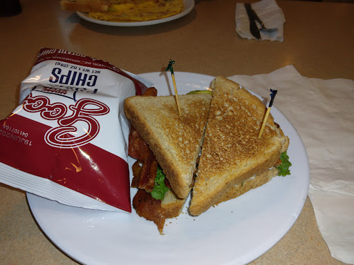 I had occasion to stop here for lunch the other day. I ordered a hot open-faced roast beef sandwich with baked potato and peas. I also ordered the chicken orzo soup. The soup was very salty so I only had a few spoonfuls. Then my meal was delivered to the table. The beef looked more like it had been pulled apart as opposed to being sliced. It was doused with a thick dark brown gravy. The beef was cold so I sent the plate back to the kitchen. When the waitress returned, the beef was hot so I dug in. After a few bites I realized that the entree was just as salty as the soup and called for the check. I live in NJ, the diner capital of the US, and was quite surprised as to just how bad the food at this establishment was. Perhaps I should have limited my selections to the breakfast menu but I would imagine that it would have come out salty as well.