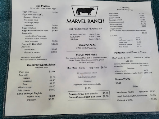 Marvel ranch is the place to go for breakfast of you are hungry and eat good company