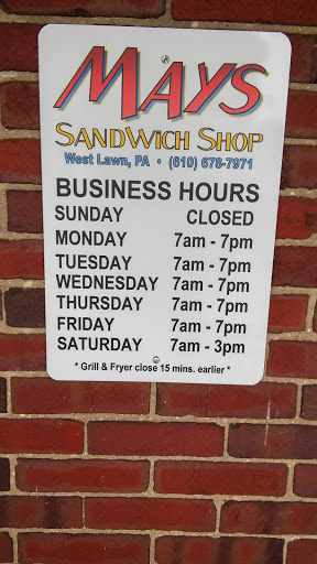 Good M & P sandwich shop selling italian sandwiches, subs, cheesesteaks, etc. Quick and reasonably priced. Mays is known in the West Lawn area and has a loyal customer following.