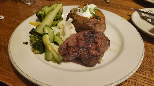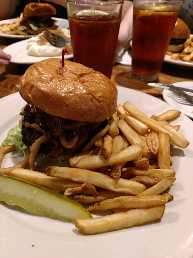 The ribs were awesome. I loved their Honey Bourbon BBQ sauce, and they served a full rack (no skimping) with 2 sides for $16.95. Service was great. The only complaint that I had was my wifes Chicken Breast was a bit salty when I tried it. Not worth picking on, I doubled up on the BBQ sauce which covered some of the salt, and it tasted great. Another member of my party had Salmon, and spoke highly of it. Ill definitely be back, but it will be hard for me to try something other than those ribs. They were great.