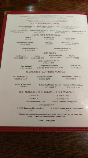 Great Szechuan style chinese food place! They have an American menu as well as a more traditional menu. The cold pork belly is really good as are many of the other dishes. Since its Szechuan style it tends to be on the spicier side. They have a prefix tasting menu the second tuesday of every month.