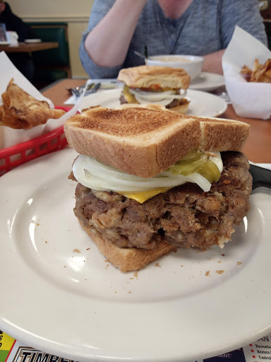 We got there just before closing but they still seemed happy to have us. Had a really excellent farmers omelet with deep fried home fries - crispy on the outside as potato chips and soft and gooey on the inside. Real cozy small-town family atmosphere, friendly staff, reasonable prices and close enough to 28 to be worth the trip off-highway.