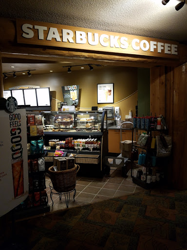 Starbucks is located inside great wolf lodge (main entrance behind checkin)- quite small but good enough.. no idea if its actually allowed to park there for starbucks though