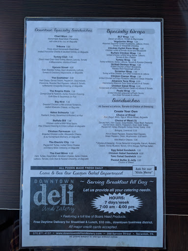 My cousin and I had lunch at the Downtown Deli recently. She liked the eatery. I eat there often. The tuna salad is very good. The tables and surroundings are always clean. The service is prompt and courteous. It can be very busy at peak lunchtime.