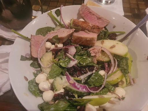 This was my first time there.The food was out of this world.Absolutely the best salad Ive ever had.The waiter was very nice, The only two problems were..for it being a very nice place I dont think the waiter should of been wearing shorts and a jacket hanging off his shoulders.and the other one happened when we were waiting to pay our bill.I choose not to put it in my review.but if the owner or who reads these reviews wants to p m me I will tell you.