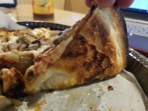Terrible crust. Very greasy. Canned mushrooms. Rubbery cheese blob. Bland sauce. Decent cheese steak, though.