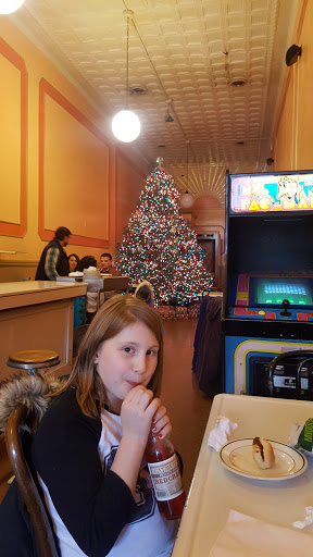 The Coney. What you see is nearly what you get -- a time capsule from when coal was still king in a huge way in bustling Shamokin. Its a hole in the wall, to be sure, but dont mistake the wear and tear for dirt and grime -- the place has changed little since its inception nearly 100 years ago. The menu is simple: hot dogs and hamburgers with Big Bens soft drinks in glass deposit bottles from local Catawissa Bottling Company. For me, its always three dogs, two with "everything" (the Coney-style beef sauce topping and diced onions) and one with just cheese. Plus a birch beer or two, in craft style, and my favorite soft drink of all time, partially because of the unparalleled taste coming from a thick, heavy glass deposit bottle. Its good food, and simple food, and you pay accordingly. But the value is in the entire experience, from food to accouterments to its storied past. The trappings are simple -- indestructible old tables, light and sturdy ancient wooden chairs. Simple and clean bathroom. The phone booth is still there, though the pay phone left years ago. If you can, peek in the store room in the back for some gorgeous wooden floors and wood-sided walk-in cooler. Close your eyes and you can almost smell the coal smoke and hear the chugging Reading Railroad and Pennsylvania Railroad engines that once rumbled past this local watering hole. You can imagine the dapper flappers swinging in for a late-evening snack. This is an iconic, living piece of Shamokin history and worth the visit.