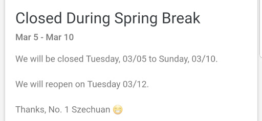 Best chines food around!! My husband and I eat here at least once maybe twice a week and we love it!! The portions sizes are always more than enough. Everything we have tried has been delicious. I use to not be a big fan of chinese food but thanks to #1 Szechuan, I am a HUGE fan and it makes my husband happy since he LOVES it :) April F