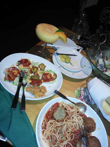Fantastic wait staff, fun game to play, drinks kiwi melon limonata, mixed berry sparkling water, both phenomenal, appetizer zucchini and calamari (not very good calamari) chicken marsala and lobster ravioli, bread sticks are always fantastic, great fresh salad, and coffee, dessert is chocolate caramel lasagna excellent