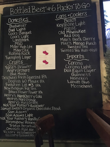 A great beer selection, lots of craft brews. I had a steak that was perfectly cooked. Very small, quaint bar room, tons of nice locals hanging out.