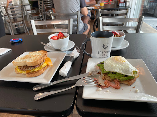 I love going to Speckled Hen. Everyone is always very friendly and helpful. They have a great selection of food and handmade drinks. It is always very clean and the service is quick. Breakfast is by far my favorite meal...their eggs are delicious. They also sell bags of the coffee they serve in store and are kind enough to grind it for you if you cant do it at home. FYI grill closes an hour before close.