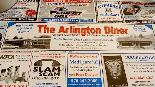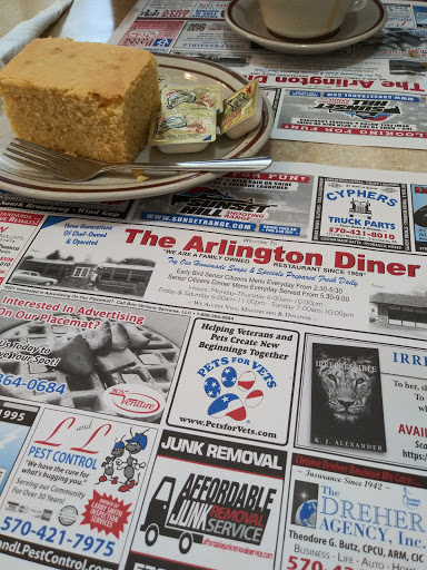 This family owned diner is my familys favorite go to diner for breakfast, lunch, dinner, or just an evening stop for desert. The staff is always friendly, and since most have worked their for years you get to know them. A few have seen our daughter grow up. The food is Excellent, and their is always something new on the menu. They also have the best file slaw, homemade, in the Poconos. It is very family friendly. We highly recommend the Arlington Diner.