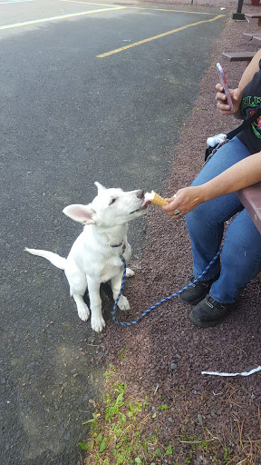We like to come here for the hot dogs and the ice cream. I like the soft ice cream and the cones are gigantic. Nice place to hang out in the spring and summer and really close to home.