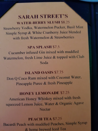 Some of the food is really good, some of its just all right. Sometimes the musics good and sometimes its really bad, but be prepared to pay a cover for it 5 nights a week whether you like what youre hearing or not. Most of my friends go here a lot so Im often stuck paying a cover for really bad music just to see my friends. A lot of people dislike this but honestly its one of the only decent places to go in the area that isnt super overpriced (though its not cheap either), so you kind of feel like you have no choice but to go here. It will stay packed for this reason until someone opens up another nice looking place with decent food and drink and reasonable prices but no cover all the time - when that happens - and it will, sarah st will find itself with a lot more room.