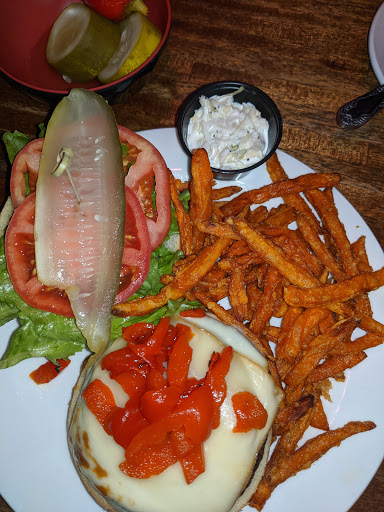 The atmosphere is more of a party bar type atmosphere yet the food and the food prices are more of a higher classed restaurant. The place was packed on the Thursday when I was there. There was a Hillbilly band playing and many people standing around the stage. The only seat I could get was across from the bar in the corner where I kept getting moved by the busboy who had to constantly get in the closet behind me or people getting a token for the pool table out of the token machine. It took about 10 mins to get waited on. My first drink was a tall Capt and coke. I never had the same waitress twice and the second waitress brought me a double Capt and coke which I did not realize until I noticed the additional charge on the bill. The GM Gerald was very nice and waited on me a couple times. I ordered the Chicken alfredo which was a lot of food (more than I could eat) and was very good but cost $14 a plate and came with no bread or salad. Parking was difficult because the place was so busy I drove around 3 times, until someone left, before I could find a spot. The staff seemed very nice and the food was good so I rated it a 3.
