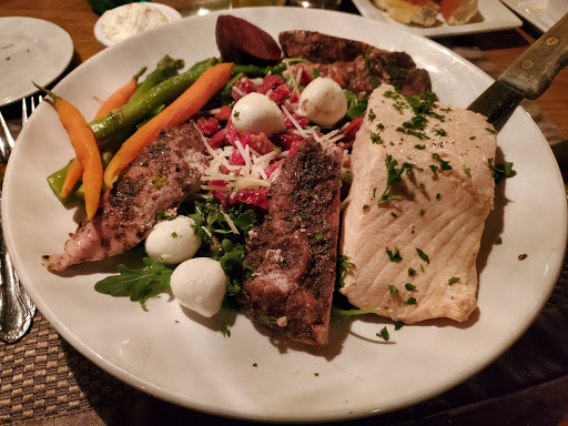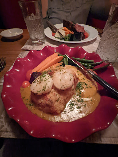 A diamond in the rough. Really surprised to find a place with a quality of food as good as this place in the place as hidden as where it is located. But I digress. As I mentioned the food is top notch but the service needs to improve may be just a little. It is making a great place perform just shy of its potential. But lets start from the beginning after a big snow storm we decided that we were too lazy to cook at home and since the storm had subsided quite awhile back we thought we might go out to eat. We were already tired of the usual suspects around the area so we thought that looking for a new place might be worthwhile. And it was. Myself, my wife and two of our kids walked in around 6:30 on a Thursday night and the place was not quite deserted but it was pretty empty, which was sort of expected given the snow that just finished a few ours back, we sat down. The menu is not extremely sophisticated but wine list was well explained rather than the usual just year, winery, and grape. The dishes I would not call sophisticated but they are well prepared and extremely tasty. Kids loved the chicken strips with fries, which is fairly unusual for us. My wife had escargot and French Onion soup, which were amazing, I had smoked trout appetizer, which blew my mind by simplicity and taste (not easy to do). For our entrees we had a Rack of Lamb and Game. Dishes came out just as we had ordered them medium rare lamb (which most places cant do) and Game in the same way. As a side note I am not sure why considering how much hunting is happening around Poconos that more places dont serve venison, boar or wild birds. Desert was great too as raspberry creme brulee hit the spot just right. The only two problems that we have noticed were that some of the details were not adhered too like anchovies on a caesar salad that we requested or black tea that we asked for but never actually got. Minor but leaves some room for improvement.