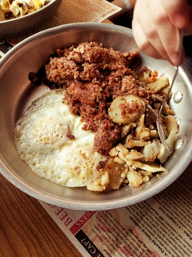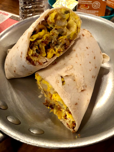 Great breakfast, real comfort food. We went here while staying the Great Wolf Lodge nearby, and the food and ambience were great. What stands out is that they serve breakfast in the pan that you then directly eat out of, which is kind of unique. The kids really enjoyed the eggs and pancakes. I had the breakfast wrap that Id recommend.