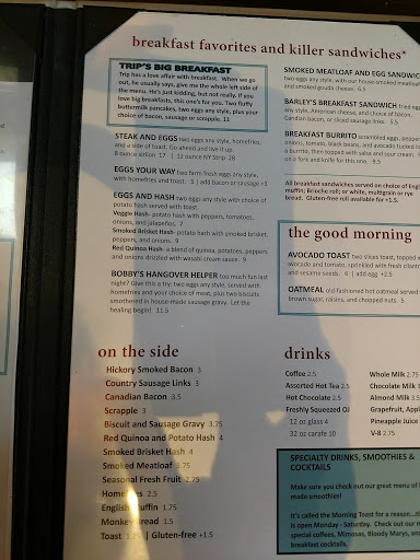 I really like Barley Creek, but there are too many flaws. Cons: The food is way overpriced and portions are often small. The vegetarian and vegan options are not great. For example, the salads are nothing special, Id rather get a salad at the local grocery store. Most of the veggie options are covered in oil. The appetizers seem like they are premade, as if they are pulled out of a package and heated up. Barley Creek is always crowded and hard to find tables and/or a seat at the bar. Part of always being crowded, the place is always super loud. I often find myself shouting across the table, sometimes shouting is not enough. If you care about talking while eating out it is best to avoid this place. Pros: Good food, they have a large selection food options including vegetarian and vegan options. If you dont mind your veggie options being mediocre and over priced. Great beer, they brew their own beer and each type is really good. Big eating area, there are two bars and a lot of other seating options. Thats if the place is not over crowded.