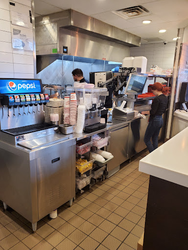 With the number of employees in the back youd expect excellent service. But service was extremely lacking. I watched as two employees make a mess of my milkshake twice. Only for it to sit it in the back kitchen for ten minutes. The fries that i received within seconds of ordering it was cold. After waiting ten minutes, staring at my milkshake, the checkout girl finally came by. I managed to ask her if it was my milkshake sitting in the back kitchen, to her reply " i guess so". And proceeded to slide it to me and went away. Doubt Ill be coming back here. Plenty of burger places around.