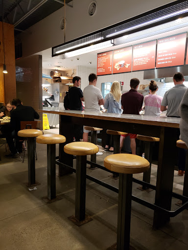 I love it here the food is yummy its almost always crowded so the food is fresh and the staff is on point. Once I learned you could use their app to order ahead and pick your meal up at the cash register without waiting in line I took my stars from 2 to 5. The line most of the time wraps around the restaurant if they can eliminate that Im happy.