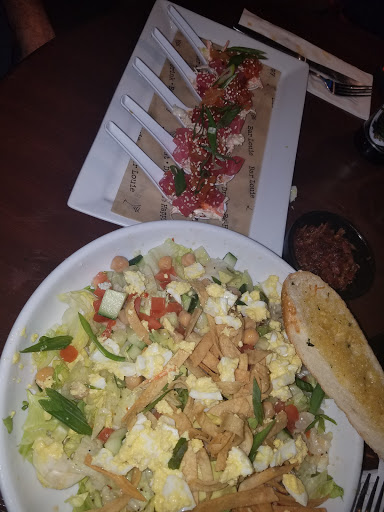 First time ever going to bar Louie and I wont be going back. First the service was ridiculously slow, waited 10 minutes before we even knew who our waiter was. Got our drinks and appetizers fast however $8 for some croutons with lettuce ,tomato and onions. And thats not all, I ordered the chicken tacos and my fiance CLEARLY ordered the grilled Mac & cheese sandwich with pulled pork and it comes with Tots or fries. All of the sudden we got the tots brought to us first like it was an appetizer,we thought nothing of it. Then they brought our food and not only were the chicken tacos cold and dry they have my fiance a baked Mac & cheese with pork AND shrimp. So we told them that they got my girls meal wrong and Alex with his "Ill fix this" said he would take care of it. 10 minutes later My girl gets another bowl with baked Mac &cheese with pulled pork. So I brought it Alexs attention and showed him on the menu exactly what she ordered and was supposed to get he asked if he should fix it again but by then my girl was so fed up she wasnt hungry anymore. We waited another 15 minutes we had to ask another waitress if we could get a box and a check so Alex finally brought the box and check and to my surprise we got charged for tator tots as an appetizer and baked Mac & cheese with shrimp. So add another 5 minutes for Alex to come back I explained to Alex the problem and assured me with his famous line "Ill fix this!" As long as it took me to write this review is as long as it takes to get service and this place. And Im a terrible Tyler. I will never go back!
