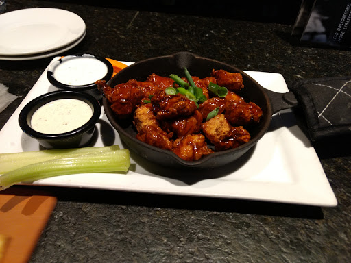 My wife and I went to meet our friends for apps and drinks for a friends birthday celebration. Our server was top notch and the atmosphere is definitely very fun. I really like the decor and how the bar is setup (one large oval in the middle of the floor). That being said, the food could have been a bit better. The flat breads we got were a little soggy upon arrival and the buffulo wings and buffulo boneless wings were WAY too salty and didnt taste like a freshly made wing sauce.