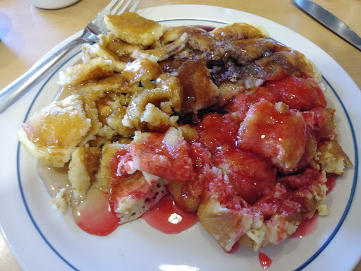 Very good experience as usual. Waitress seemed a little too scripted constantly saying "not a problem" after literally every statement. Not that it mattered, as the food was good, the service was good, and they were nicely accommodating to a guy showing up relatively close to their closing time, who also did computer work off his phone on a conference call. They made my dream of working on computers while eating pancakes a reality, which is something I am very grateful for xD