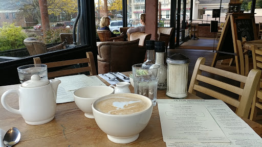 Our party of seven arrived at different times so as the first couple there we were treated with complete and total disregard. There was no one to seat us so we sat at an open community style table. Someone showed up after 20+ minutes while we perused mini menus left previously on the huge over-wide wooden slat table. At least it was clean**. I asked at the "coffee prep" area if I could get a cup only to be looked at as if I had 2 heads with audacity to annoy working staff. Finally a pleasant female said she would take our orders even though this was not her station. After a still long wait, the individually made coffees were delivered. We attempted conversations but the noise level of acoustically bouncing surfaces hampered that effort. After a quick vote we moved to her service area and lost our coffee pots as the cleanup was the fastest service** in Le Pain Q. Once reseated we ordered our foods and coffee replacements. Since I was able to juggle water glass, menu, coffee bowl, etc. I was able to drink while waiting for the "refill" and an excellent goat cheese & green OTD omelet. (Of The Day = OTD) At this time, things got terrifically improved to our mutual multi-state satisfactions. The gluten free stuff was very good and our groups noise added to the overall happy tumult. Individually I felt at one point in the ordering process we were re-filming "Five Easy Pieces" eggs & toast scene re: three soft boiled eggs because this style ovidipi only came in twos. My bro-in-law and crew of gluten avoiders were happily and healthily fed without a "Candid Camera" filmed finale to the coddled egg menue (sic). 0verall we mostly (4 of us) dwell on "Island Time" (retired). So having put in lifetimes of waiting for Good Oh!, time was a minor issue of having a great meal here. We also understand that baffles are coming to soften the noise clamor and experience will shorten service delays. But coffee will stay being served in individual pots & bowls rather than cups thus youll be able to perform a Javanese cafe ceremony when you free your own gluten garden of the soul. Poetic license of gluten free folk. Regards, 21st century certified sesquipedalian aka food critic Armand Gristle protege