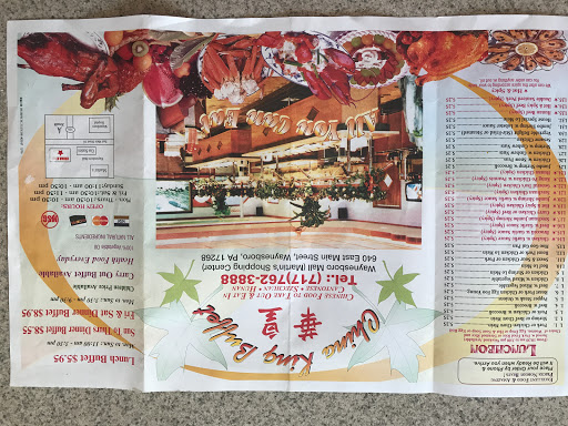 The China King is decent. Only place to get good Chinese food in Waynesboro. There buffet is hit or miss and usually better during lunch hours. Its a smaller buffet but has a good verity. (General tso’s, pepper steak, Mongolian beef, sweet and sour chicken, beef and broccoli) the cheese wontons are amazing! The take out is always hot and fresh. Very good, very friendly staff. Recommend eating here if you looking for Chinese food in waynesboro 2017-Waynesboro Reviews
