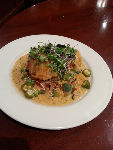 The good was excellent. Crab cakes with nearly sold cream, excellent young greens and corn salad, potato "chips," and the better special was just as good. But the service... Good thing the young man serving the next table was attentive in this late holiday evening, as our server kept disappearing.