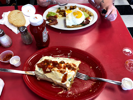 I liked it. I had lunch here. I had a club sandwich and it was HUGE. More importantly, it was delicious. It was actually carved turkey, not chintzy deli sliced turkey. The bacon on it was really good as well. You wont go hungry here. The portions are good sized. My only thing I didnt like - and it may just be me - was the fries. I cant tell if they were seasoned or what but they werent my favorite. Cute place with a retro decor.