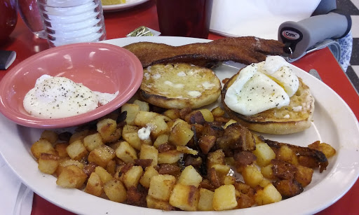 The food was less than desirable. They are suppose to be breakfast and lunch only, you think this would have made the food decent. On the contrary however the food was awful (I had a burger, breakfast may be different). The burger was clearly a frozen pre-patty, and to be honest, McDonalds is MUCH better (I hate McDonalds burgers, yet I think they are better than this place). The Bacon that was on the burger was nearly impossible to chew. We were never asked how our food was while we were at the table eating, nor did the waitress return to provide refills. I would never return to this location. I am writing this review today, but this experience occurred a couple weeks back. We visited the establishment around 11:30am for lunch, they were not busy (maybe 10 tables total at that time. I dont suggest going here, especially if you want a burger. Youre better off going a minute or two up the road to the fast food joints.