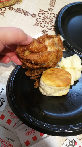 A HORRIBLE experience at the drive thru, i do not know how they are rated ad 4 stars?? not the first time to pick up nasty,oily, burnt chicken with soggy mashed potatoes and watery gravy and hard as a rock biscuits so if your looking for flaky forget it. And customer service is a disgrace I spoke to a supposed manager named Daniel said I had to go back to the store with the chicken in order to exchange or refund, when I asked for another manager he said the other manager is joey and he just got off shift, guess what guys joey was the cashier that sold me the chicken.