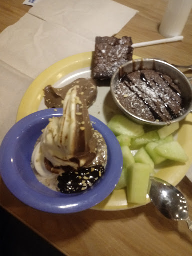 Compared to before the "upgrade" we would be there a lot. Now, its maybe once every two months. OCB always has an offer every month if you sign up for their emails. Which if I go I always take advantage of. They have family nights on Thursdays which means kids up to 11yrs price at $1.99, offer cannot be combined with coupons though :(, and they use the event room for coloring and such. I find that the food choices are not as much as they used to be. However, they have chicken, fish, pork. A salad bar. Dessert section, including ice cream and frozen yogurt. They have the Coca Cola dispensing machine for multiple choices like Mello Yellow. Icee, Coffee and reg milk for kids. Seating are long booths or chairs. Now, Ive been to their breakfast and it was fair. The syrup was watered down. Thats what I mostly remember about breakfast but we had a lot of food before going to Dorney Park. :) Wish they would bring the steak back. We always leave full!