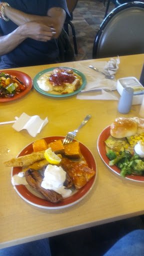 I go here on a usual weekly basis for Breakfast and Dinner. The waitresses are very nice, and are usually taking empty dishes fairly quickly. The Food is pretty good. Ive been coming here since i was just a child, and with the remodel, it improved drastically. I do wish there was more food choices, and i do wish that theyd go back to making Omelettes in pans and not a flat-top